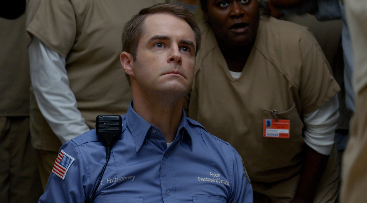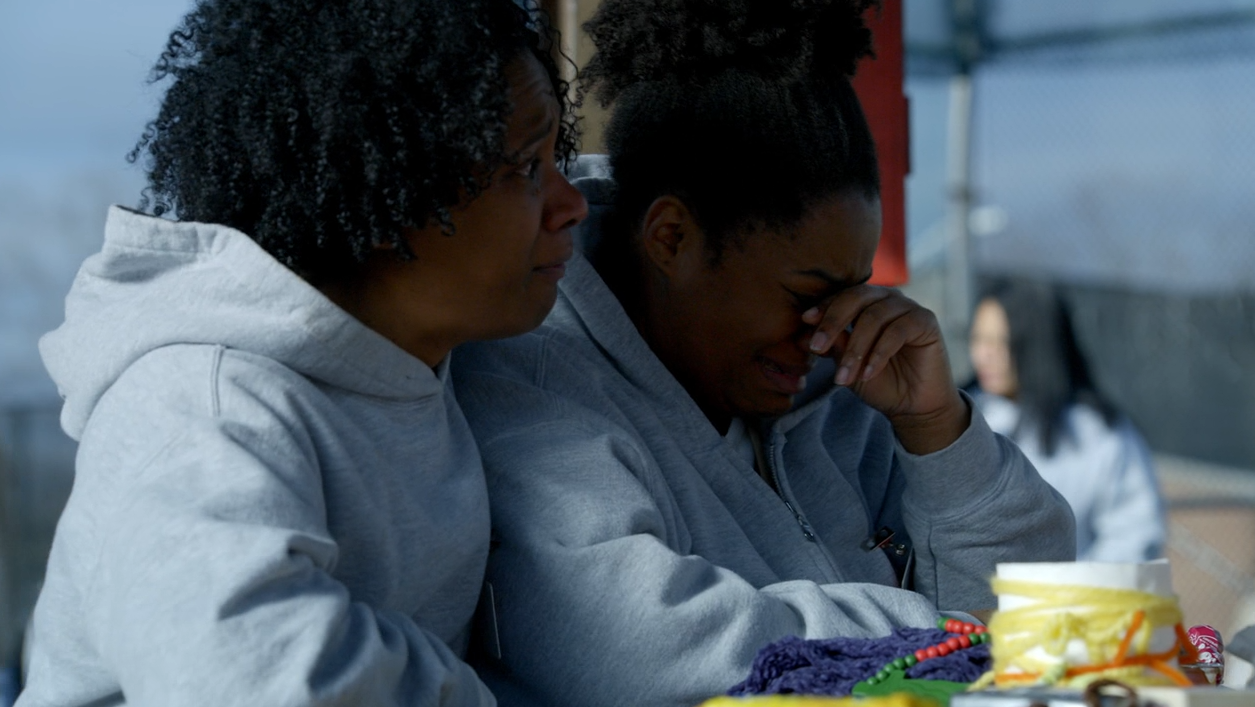 C’est un cauchemar éveillé. Poussey est morte. Poussey…n’est plus de ce monde. Tout ça à cause d’un tyran et d’une armée d’incompétents psychopathes notoires. Quant à Baxter, responsable direct du décès de Poussey, celui-ci sait qu’il restera à jamais hanté par ce qu’il vient de faire. Car contrairement à ses collègues, Baxter a encore une conscience. « Monsieur Caputo. Est-ce qu’elle est encore en vie ? La prisonnière que j’ai blessé. Est-ce qu’elle va mieux depuis ? ». Bon sang.