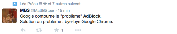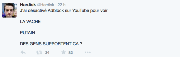 Oh les salops ._. D’autant plus que pour punir les utilisateurs d’AdBlock, YouTube diffuse des pubs de TROIS MINUTES impossibles à zapper xD Anyway, nous n’allons pas nous le cacher : beaucoup de monde utilise AdBlock. Moi-même qui gère un site d’actu dont les sources de revenus passent par la pub, j’y ai recours dans certains cas. Notamment lorsque j’estime qu’un site se fout un peu trop de ma tronche en m’imposant des pubs vidéos le son à fond alors que je n’ai RIEN demandé. Autant les bannières statiques, ça passe (hey, il faut bien gagner sa croute), autant les publicités invasives, NON.