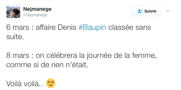 En attendant, nous nous retrouvons avec une injustice de plus. J’estime qu’en termes d’harcèlement et agressions sexuels, les délais de prescription ne devraient même pas exister. À noter, tout de même, que certains faits pourraient être qualifiés pénalement même si cela n’aura pas d’incidence sur la vie de M. Denis Baupin. Comment voulez-vous redorer l’image de la France et de la sphère politique lorsque de telles affaires finissent ainsi ? Et dire que la Journée des Femmes a lieu dans deux jours… Autant dire qu’il y a encore beaucoup de chemin à faire ! Vivement que tout ce système soit réformé. Même les magistrats sont frustrés puisqu’ils reconnaissent la véracité des faits mais ne peuvent que se conformer à la loi et prescrire ces mêmes agressions. Las.