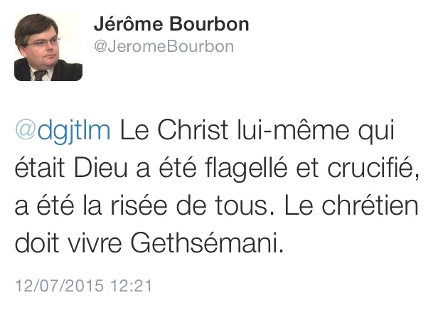 Cela étant dit, soyons clairs tout de suite : il n’y aurait jamais dû y avoir de gifle malgré le caractère guignol de la victime. Laquelle semble d’ailleurs ne pas avoir porté plainte puisqu’il est toujours possible de voir la vidéo. Au contraire, il semblerait que cela fasse plaisir à Jérôme qui, depuis, se compare à…Jésus Christ -_- Anyway, autant je condamne le geste, autant je ne vais pas plaindre le personnage. Loin de là…