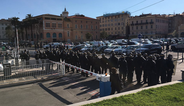 À l’extérieur, plusieurs dizaines de manifestants (cette fois-ci du PCF -Parti Communiste Français-) manifestaient également leur mécontentement face à ce meeting FN. Sans pour autant tenter d’infiltrer les lieux. Ceci-dit, il y a eu des affrontements avec les policiers et, là aussi, des gaz lacrymogènes ont été utilisés. Preuve de la tension qui règne en Corse quant au sujet de l’indépendance corse. Ce qui m’étonne vu que j’étais persuadé que le FN avait le vent en poupe en Corse ! Pas tant que ça apparemment u_u Il faudrait organiser un référendum sur le sujet un de ces quatre. N’ayant pas de connaissances approfondies, j’ignore si la majorité du peuple corse est pour une indépendance de leur île. De même, je me demande pour qui comptent voter ces indépendantistes (╹o╹) Probablement pas Mélenchon –> Loin d’être en odeur de sainteté depuis qu’il a dénoncé « l’ivresse ethniciste » des militants indé…