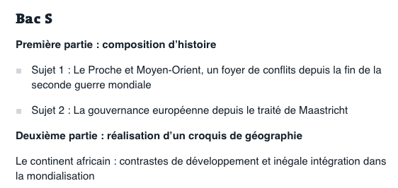 Autant dire que ce fut une belle fournée…pour les L et les ES xD J’imagine que le responsable des sujets de S ne souhaitait pas voir les futurs médecins réussir leur bac d’Histoire-Géo <_< Voyez par vous-même —> Proche et Moyen-Orient depuis la 2nde Guerre Mondiale…et la Gouvernance Européenne depuis le Traité de Maastricht. Comparé au sujet des ES/L (Mémoires de la 2de Guerre Mondiale, soit le sujet que TOUS les ES/L ont révisé), c’est un peu le jour et la nuit ! Puis cette magnifique carte des États-Unis <3 D’ailleurs, j’étais également tombé sur la map US en 2005 huhu.