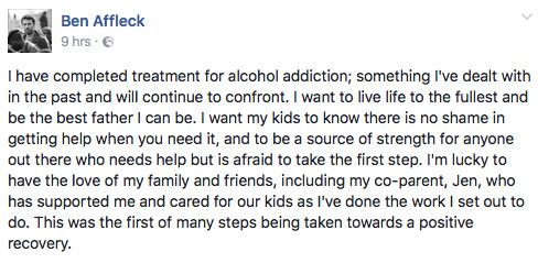 « Je veux vivre ma vie du mieux possible et je veux être le meilleur père qui soit. J’aimerais que mes enfants sachent qu’il n’y a pas de honte à se faire aider quand on en a besoin, J’aimerais que mes enfants soient des rocs sur lesquels pourront s’accrocher toutes les personnes qu’elles aiment en cas de coup dur, J’aimerais que mes enfants soient comme leur mère, Jen, ma co-parente, Jen qui m’a supporté et s’est occupée de nos enfants pendant que je tentais de combattre mes vieux démons ». Il n’empêche —> Je plains Jennifer -_- Ça a l’air d’être le type de femme qui, une fois qu’elle est amoureuse, est prête à tout pour soutenir l’homme de sa vie. Quitte à sacrifier la sienne. Contrairement à beaucoup d’internautes, je ne trouve pas ça sain. Elle a dû en voir des vertes et des pas mûres…. En espérant qu’il s’agisse de la dernière crise pour Ben.