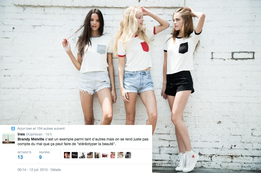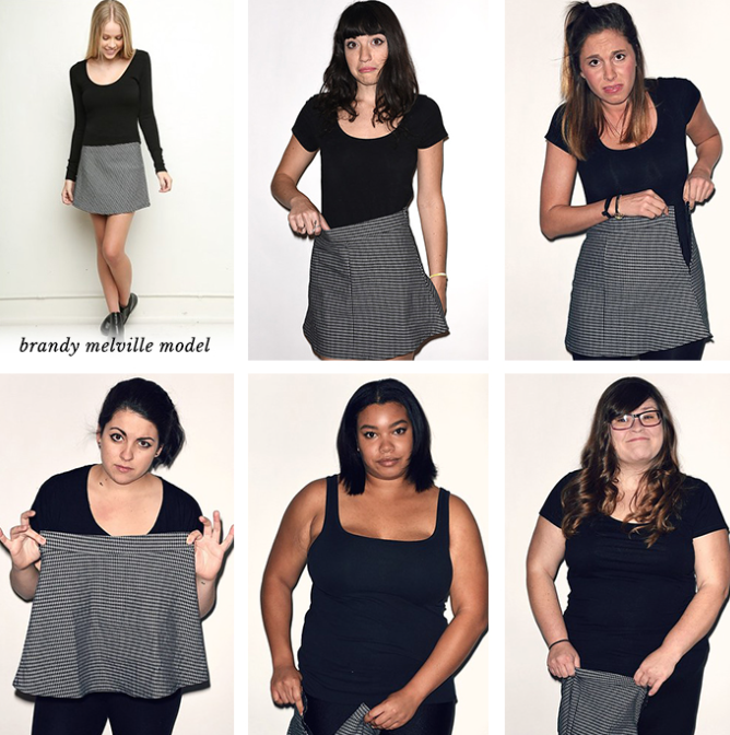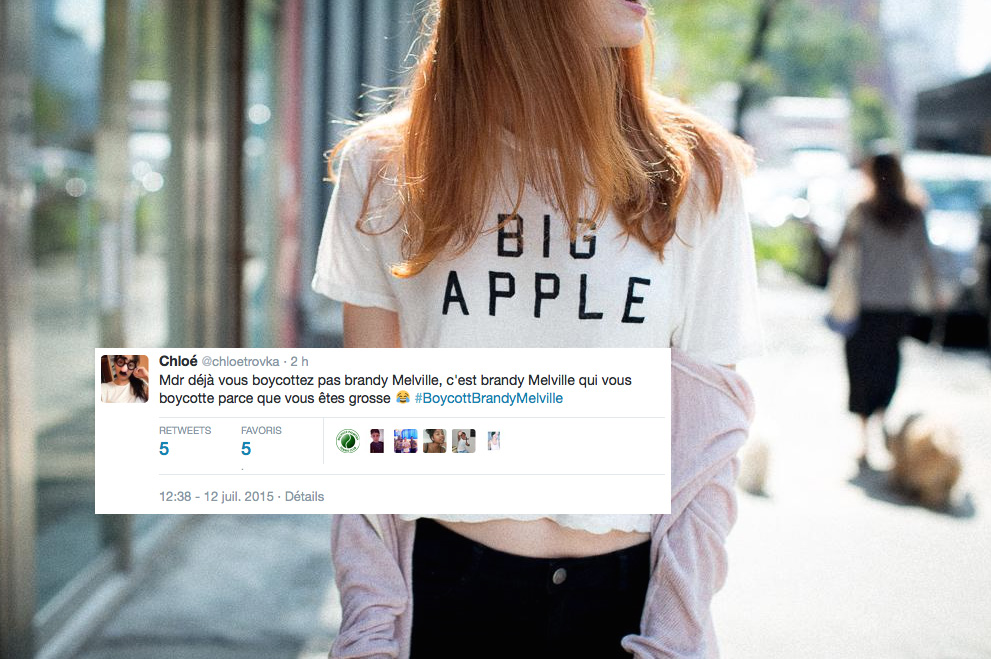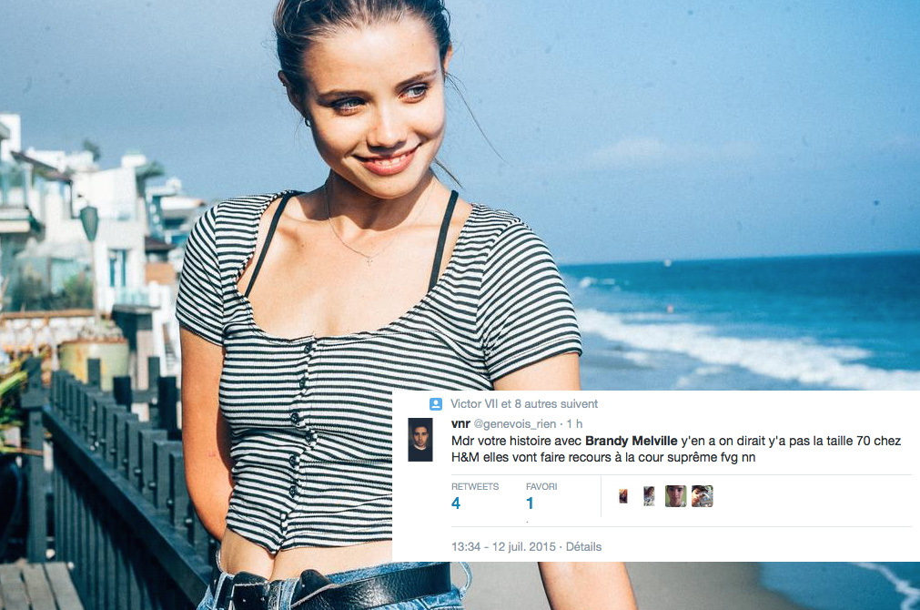 En gros (lol), c’est un peu comme l’appel au boycott d’Abercrombie and Fitch il y a deux ans. Sauf que ici, aucune déclaration polémique de CEO mais une taille unique qui, évidemment, ne plait pas à tout le monde. À savoir que Brandy (&) Melville est une ligne de vêtements féminins qui ne propose que des tailles uniques s’adressant aux tailles 32/36. 36 grand max hein u_u