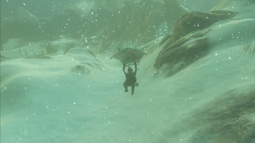 J’ai envie d’y croire. Je veux y croire (-‸ლ) Mais qu’est-ce qu’il est difficile de se faire un avis définitif ! Entre l’ouverture à l’Open World, la myriade de possibilités offertes (dont celle de sauter QUAND ON VEUT et de se servir de son boucler en mode snowboard oklm) + cette promesse d’une liberté absolue dans un monde IMMENSE, il y a de quoi fantasmer comme un dingue *_* À l’inverse, si on est sceptique ou pessimiste, il y a de quoi s’inquiéter plus que de mesure. Qu’il s’agisse de l’aspect purement technique, où on voit bien que la Wii U a du mal à tenir le coup (framerate inconstant, éléments qui pop-up au loin), ou de l’aspect ludique/épique.