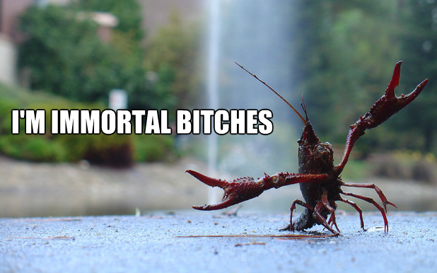 Le homard ne vieillit pas, il devient au contraire plus puissant…et plus lubrique. Par conséquent, plus les années passent et plus notre bon vieux homard devient énorme et excité de la quéquette. Intéressant.