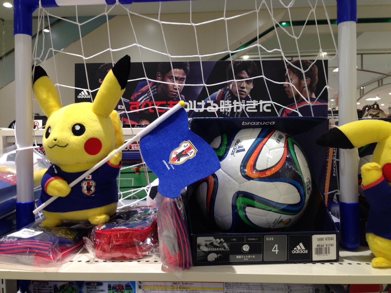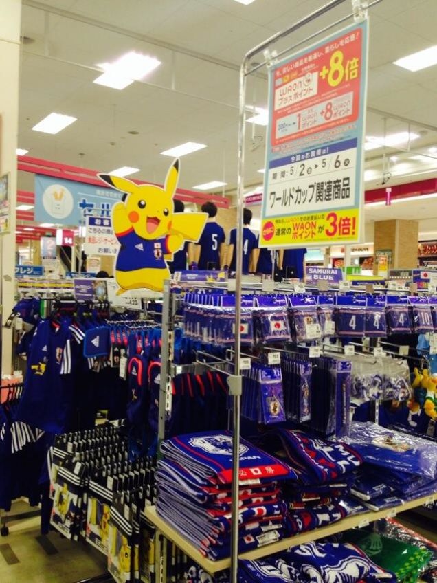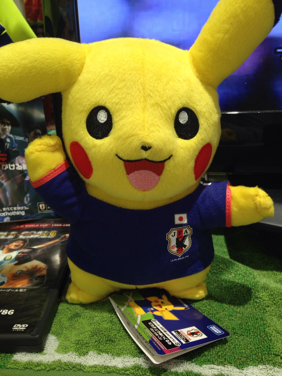 Cette fois-ci, c’est certain : le Japon va gagner la Coupe du Monde. Et je serai le premier de leurs supporters \o/ Pour ceux qui habiteraient Vénus, je rappelle que Pikachu est la mascotte de l’équipe japonaise pour le mondial 2014. Résultat : du merchandising en veux-tu, en voilà. Casquettes Pikachu, écharpes Pikachu, donuts Pikachu (DONUTS) peluches Pikachu…et bien sur les maillots officiels de l’équipe du Japon avec Pikachu en écusson. Manque plus qu’aux joueurs à reproduire la win-attitude de l’équipe de foot féminin (juste les championnes du monde hein) et on est bon.