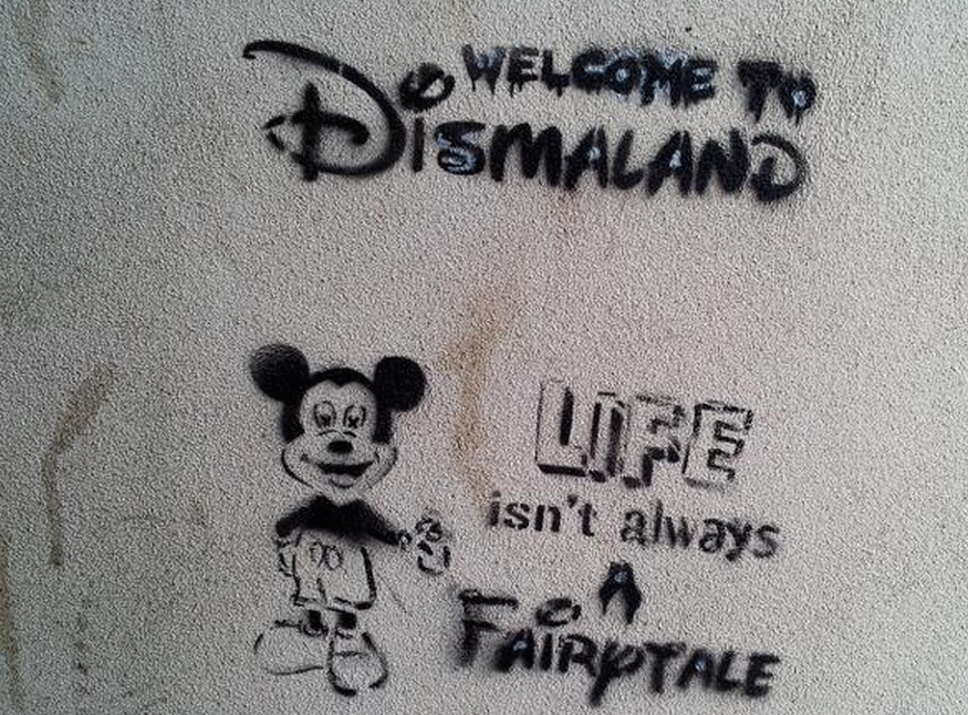 Mon enfance est salie T_T Même si je ne peux que m’incliner face au travail titanesque accompli par l’artiste britannique Banksy. Lequel, avec son Dismaland de l’horreur, marquera sans aucun doute l’année 2015. Je ne sais pas combien de temps lui a pris la construction de ce Disneyland industriel et post-apocalyptique mais ça doit se compter en années de travail. Et, après réflexion, j’aurais bien aimé y faire un tour : juste histoire de réaliser ce que ça fait d’être plongé dans le penchant cauchemardesque de Disney <_<