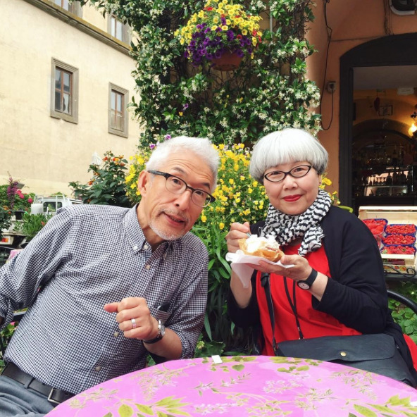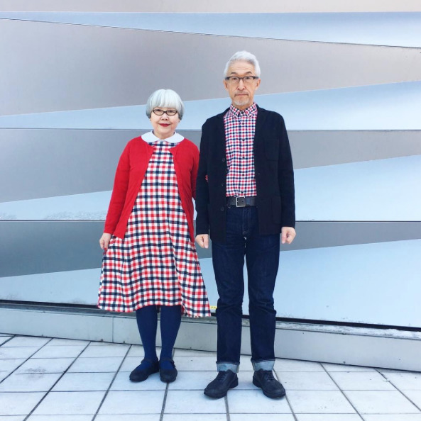 Le couple de 2017 ? Je crois bien, oui !!! Mariés depuis 37 ans, les Époux Bonpon se sont fait un trait d’honneur de coordonner TOUS leurs vêtements ! Objectif —> Être le couple le plus CHIC du Japon ! Et autant vous dire que c’est réussi (⌐■_■) « Nous sommes tous les deux passionnés d’art, de culture et de mode au sens large […] Il nous paraissait évident de concilier notre passion et notre amour à travers le temps ! Et cela de la manière la plus régulière possible » explique Mamie Bonpon ! « J’aimerais dire que c’était mon idée à la base mais elle va me crier dessus *rires* » ajoute Papy Bonpon. « Nous nous prenons déjà suffisamment le chou à savoir qui copie qui lorsque nous sortons dehors avec notre look du jour ! ». La régularité dans l’innovation —> Voilà l’un des secrets ayant permis aux Bonpon de rester ensemble aussi longtemps ! « Ça se voit et les gens le voient ! Nous sommes amoureux comme au premier jour » explique en souriant Mamie Bonpon.