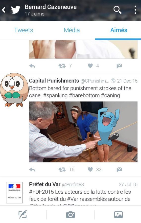 Évidemment, l’intéressé a supprimé derechef le dit-tweet dès qu’il a réalisé qu’il s’était fait prendre. Malheureusement pour lui et heureusement pour nous, la fonction « Capture d’écran » existe ㄟ( ▔∀▔ )ㄏ Ce qui a permis aux twittos à l’origine de la découverte d’immortaliser ce like si révélateur d’un classe politique masculine empêtré de sexisme et de perversité à l’égard des femmes. Sans compter cette atmosphère d’impunité totale qui a poussé notre cher ministre de l’Intérieur, Bernard Cazeneuve, à liker un tweet illustré de fessée SM via son compte officiel. Le like en question a eu lieu le 20 décembre 2015 mais n’a été découvert qu’aujourd’hui.