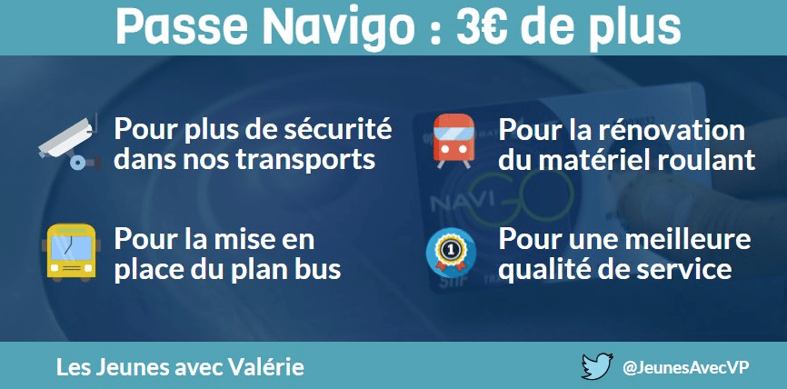 Ha, les politiques et leurs fausses promesses <3 C’est tout un rituel ! Et ne vous méprenez pas, qu’il s’agisse de Valérie Pécresse des Républicains ou d’un autre zozo du PS, le résultat aurait été le même —> Augmentation du Pass Navigo ! Lequel, pour rappel, était passé à un tarif unique de 70 euros en septembre 2015 et cela quel que soit la zone où l’on réside. Et alors que Pécresse avait juré de ne jamais toucher au prix, déclarant ne pas vouloir « jouer avec le pouvoir d’achat des Franciliens », voilà qu’elle annonce aujourd’hui une augmentation de 3 euros. Dès septembre 2016…