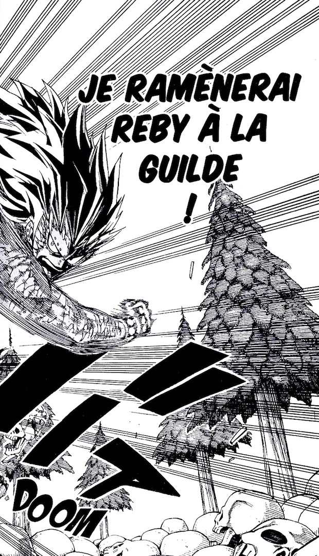 Neinhart a commis une erreur qu’il n’aurais jamais dû commettre —> S’en prendre à Erza ! Désormais, seule l’absolution l’attend. Du coté des autres combattants du bien, tout semble s’arranger ! Leon reprend confiance en lui grâce aux sages conseils de Grey contre cette Oul qui n’en est pas une. Carla arrive à la rescousse de Wendy histoire de venir à bout de Ezer. Laxus se charge de renvoyer Hades (ou Precht Gaebolg) à la maison. Enfin, Jubia et Meldy ont vaincu Zancrow et Keyes grâce à la grande confiance mutuelle qui les unit (-‸ლ) Tout est bien qui finit bien ! D’autant plus que Kagura a pu tourner la page eu égard à sa rancoeur contre Gerald ! Lorsque celui-ci avait tué son frère, Simon, parce qu’il se trouvait sous l’emprise du sinistre Zeleph… Pendant ce temps, Gajeel Redfox s’apprête à livrer le combat de sa vie.