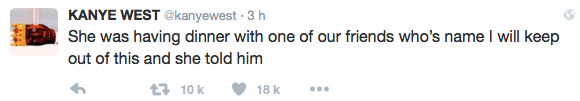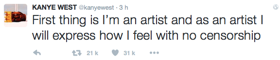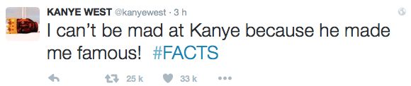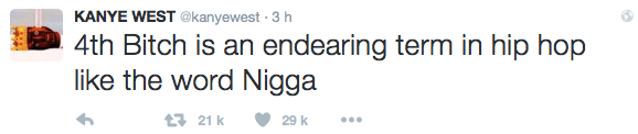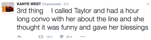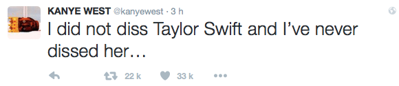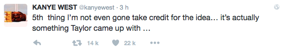 La punchline en question –> « J’ai l’impression que moi et Taylor pourrions recoucher ensemble ! Pourquoi ? Parce que j’ai rendu cette b*tch célèbre ! ». À savoir qu’il fait référence au moment où il s’était emparé du micro de Taylor Swift (2009) alors que celle-ci venait de remporter le MTV Video Music Award du meilleur album. Kanye lui avait alors fait savoir que Beyoncé méritait mieux cet award. Voilà à quoi cet imbécile tout terrain fait référence. Depuis ? Le frère de Taylor a jeté ses Yeezy à la poubelle (lol) et Kanye a tenté de se justifier sur son Twitter de la pire manière qui soit. Je vous laisse en juger par vous-mêmes.
