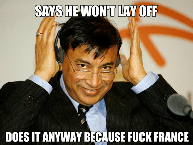 Après ça aurait pu être pire si l’État français, et surtout l’intersyndicale, n’avaient pas brandi la menace de nationalisation. Moi ce qui me gêne le plus à vrai dire, c’est pas tant les mesures du groupe, qui font partie inhérente du système capitaliste dans lequel la productivité prime avant tout, mais les engagements de départ pris par Mittal. Car la condition du rachat était bel et bien qu’il n’y ait aucune suppression d’emplois dans la zone européenne et que sa compétitivité soit assurée : conditions qui n’ont à l’évidence pas été respectés.