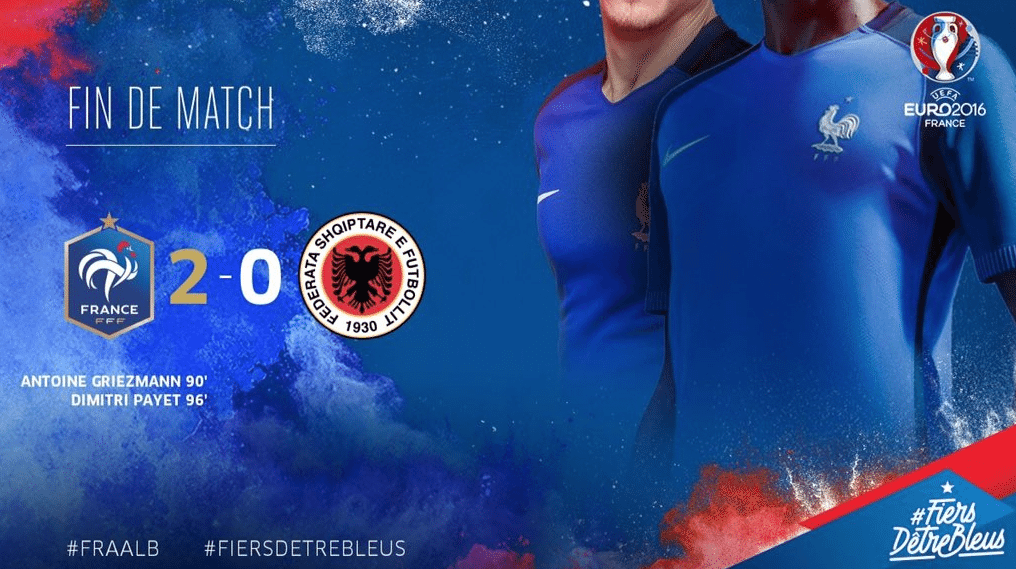 À nouveau un match fort en sensations <3 À savoir que les supporters français ont dû faire preuve d’un self-control olympien puisqu’il aura fallu attendre la 89e minute pour que la tête Antoine Griezman, via un centre PARFAIT d’Adil Rami, délivre enfin les bleus ! 5 minutes plus tard et c’est le messie Dimitri Payet qui, en bon prince, enfonce le clou et assène un deuxième but à travers le mur albanais ! 89 minutes d’angoisse pour 5 minutes de bonheur intense (-‸ლ) Décidément, il n’y a que la France pour nous faire ressentir ce genre d’émotion !