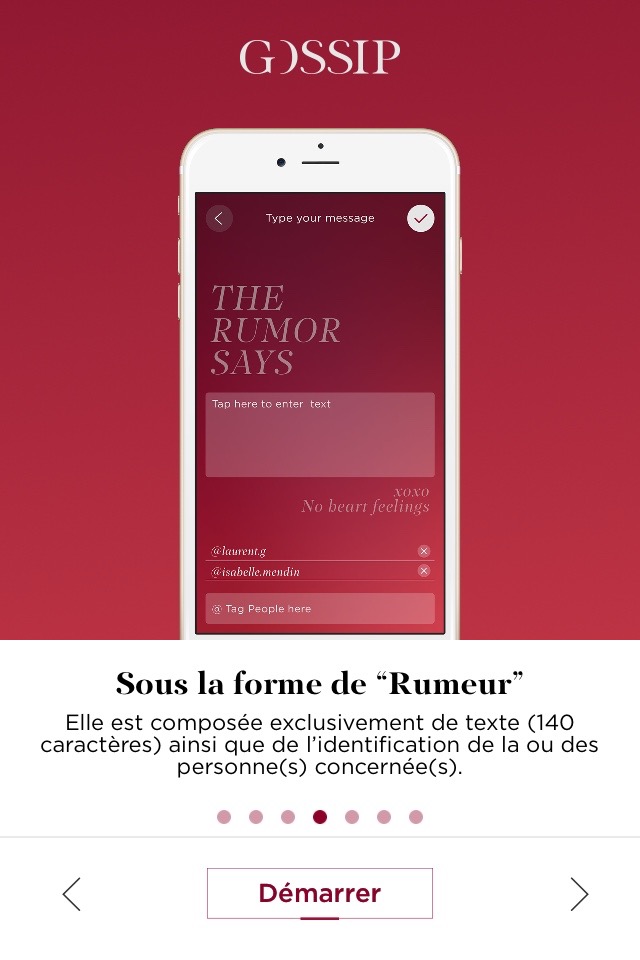 « Jure Jennifer elle a sucé Henry ? Cette pute mdrrrr » : voilà le genre de potin sympa qu’il était possible de consulter sur l’application Gossip avant qu’elle ne soit bloquée momentanément sur l’App Store et l’Android Market. Le principe est simple : vous téléchargez « Gossip » et créez un compte en vous connectant via Facebook. Il ne vous reste plus qu’à partager toutes les saletés sur telle ou telle personne qui vous passent par la tête. Sachant que c’est publié en anonyme et qu’il y a deux formes de posts. Les rumeurs (texte) et les preuves (photos/vidéos) qui restent en ligne dix secondes.