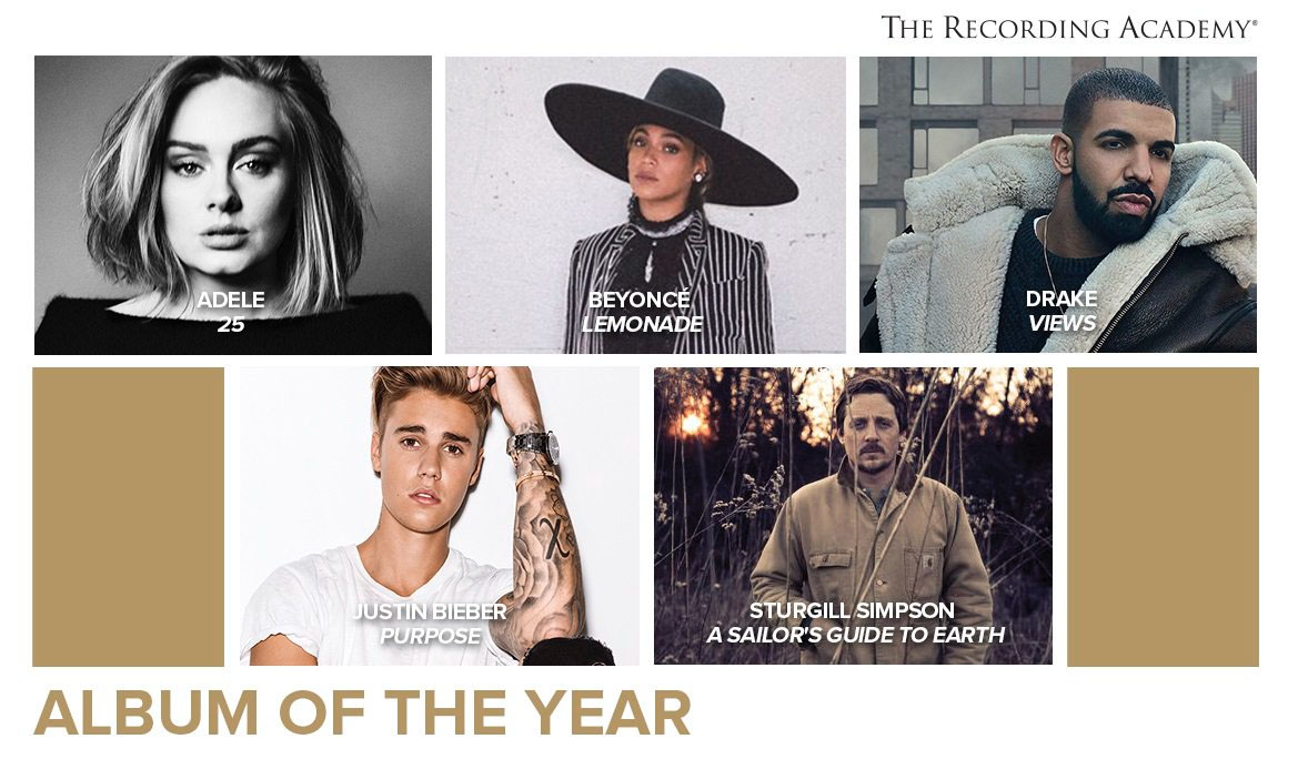 À part ces trois-là, je vois mal qui pourrait s’emparer d’un Grammy Award aussi prestigieux ! Drake et son album Views ? Nope ! Sturgill Simpson ? Who the hell is that guy ? Pour rappel, l’édition 2016 des Grammy’s avait été marquée par une victoire nette de Taylor Swift qui s’était emparée des Grammy’s de l’Album de L’Année pour Bad Blood ! Et vu le travail colossal qu’a délivré Queen B sur Lemonade, album à la fois personnel et très audacieux, je vois mal comment la belle pourrait ressortir bredouille ! D’autant plus que les Grammy’s ont cette réputation d’Oscars de la Musique avec un jury très attentif à la notion d’effort artistique (teneur du message, cohérence de l’ensemble, prise de risque) ! Réponse le 12 février 2017 \^o^/