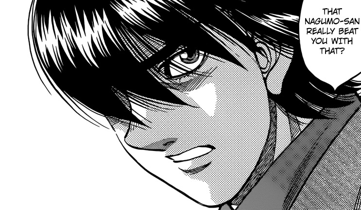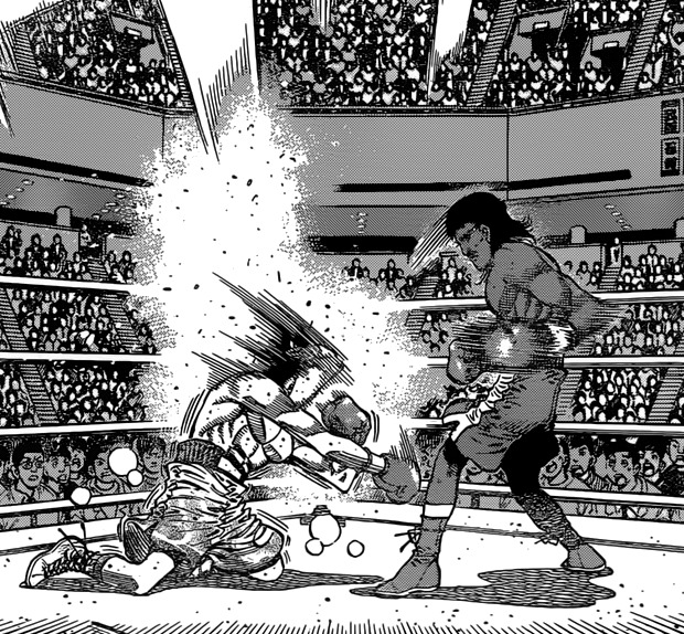 Et bien ! Ce fut rapide <_< On s’attendait à une pareille conclusion mais tout de même ! Je ne pensais pas qu’elle se fasse de manière aussi lapidaire ._. Depuis le départ, Nagumo-chan n’avait aucune chance… En témoigne le fait que Miyata ait parfaitement cerné son rythme ! Pourquoi n’a t-il pas contré Nagumo lors de leur sparring ? Parce qu’il risquait de le blesser… Et parce qu’il voulait comprendre pourquoi Ippo avait perdu « contre ça » >__< Le fait qu’il lui demande s’il est cassé est dès lors tout à fait compréhensible ! Quand bien même le reboot de Makunouchi ne devrait pas tarder à le rassurer (⌐■_■) D’ailleurs, il est temps que Ippo revienne sur le ring ! Ça fait deux ans et demi que le combat contre Gonzales a eu lieu… Deux ans et demi !!! >__<