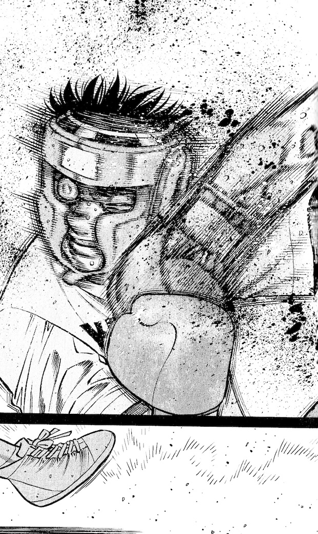 Il aura fallu l’intervention de Takamura (comme souvent) pour que Makunouchi réalise qu’il est l’homme de la situation. Certes, il n’est pas fausse patte mais lorsqu’il déploie un Dempsey Roll, Ippo change de jambe pivot. « Inverse le sens lorsque tu t’avances vers ton adversaire ! T’as juste à t’y exercer ». Et s’il y a bien un domaine dans lequel Makunouchi excelle, c’est bien celui de l’entrainement. Comme toujours, c’est un plaisir de le voir s’adonner jour et nuit à parfaire un style pour le bien de ses camarades. Bien sûr, on se doute que tous ces labeurs finiront par porter leurs fruits lorsque Ippo reviendra sur le ring.
