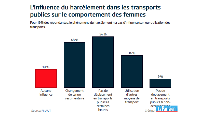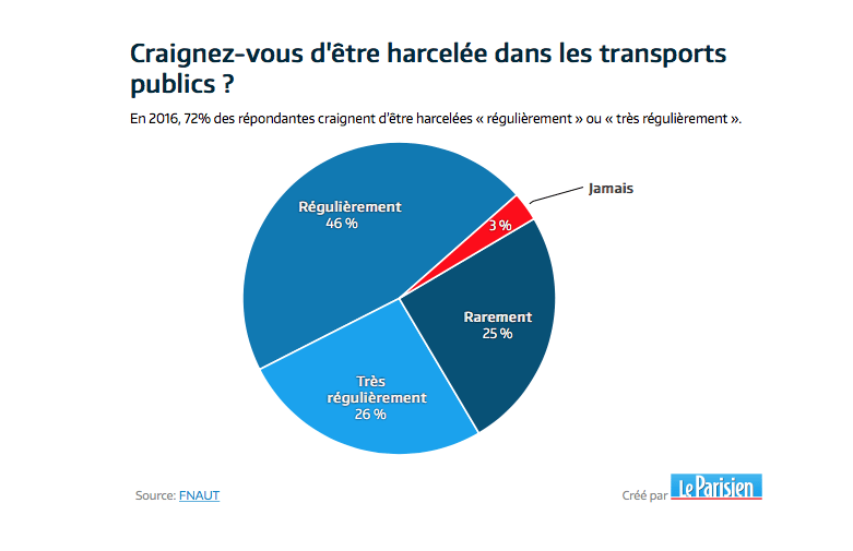 1. Ca m’étonne que le chiffres des femmes harcelées dans le métro ne soit pas de 100 %. Car, c’est quelque chose de systématique. J’ai subi des choses pas très sympathiques dans les transports.