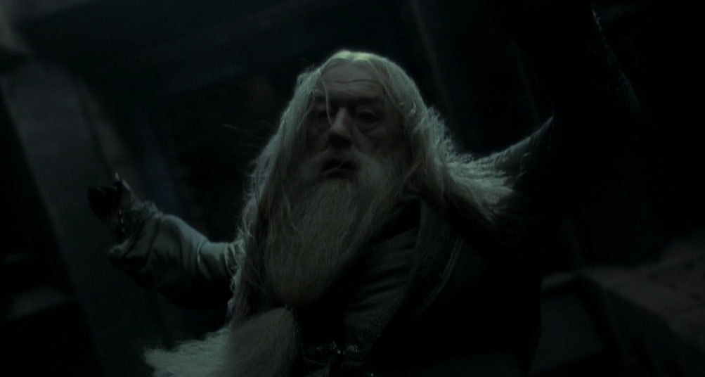 Et pourtant… On réussit quand même à être triste T_T Dumbledore était le Jiraya de Harry Potter ! Son mentor le plus iconique, le sage que personne ne voyait mourir et qui se sacrifie pour la nouvelle génération (-‸ლ) ne mort d’autant plus rude à accepter que Dumbledore n’a de cesse d’être affaiblie et amoindrie au cours de ce 6e opus (•︵•) D’abord sa main droite qui pourrit une fois qu’il a détruit l’un des horcruxes de Voldemort. Puis l’élixir du démon qu’il boit jusqu’à la dernière goutte et qui lui fait perdre la raison… Sans compter la horde de Gollum qui les attaque juste après et le sort de feu BADASS que Dumbledore parvient à utiliser malgré son état ! Ha, il nous manquera… L’une des morts du HP Universe qui m’a le plus marqué avec celle de Sirius…