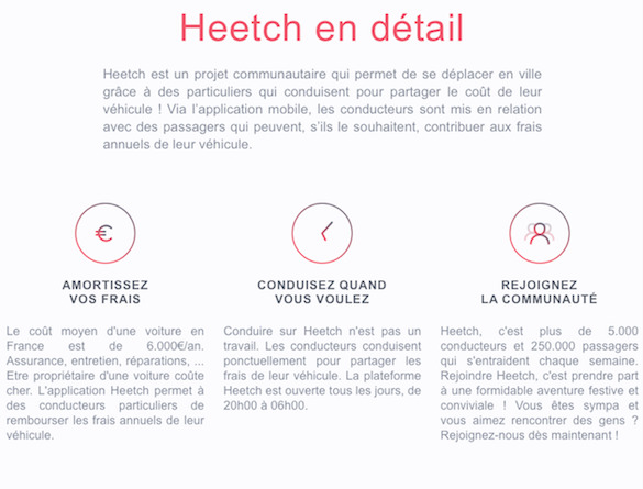 Ainsi qu’une amende de 200.000 euros dont les 3/4 en sursis. Super <_< Ne connaissant pas Heetch, si ce n’est de nom, autant vous dire que j’ai un peu galéré pour en comprendre le principe ! Si j’ai bien tout saisi —> Heetch est une application mobile mettant en relation des conducteurs et des clients dans une optique de covoiturage ! Contrairement à Uber où les chauffeurs sont employés par la société et travaillent toute la journée ! Ici, Heetch fait appel à des chauffeurs particuliers et ponctuels et fonctionne de 20h à 6h du matin. Essentiellement du jeudi au dimanche ! En bref —> Heetch est au covoiturage urbain ce que BlaBlacar est au covoiturage à longue distance ! Sachant que la cible est principalement jeune, fêtarde et banlieusarde ^^ Forcément –> Plus de 80% des trajets se font entre Paris et sa proche banlieue. Reste à savoir pourquoi cette condamnation…