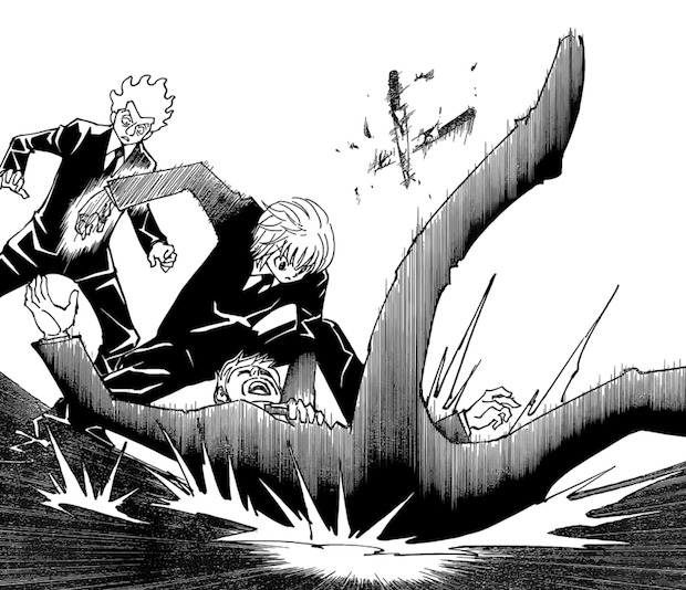 Retrouver Hunter X Hunter « seulement » un an après la pause ! C’est beau !! En général, c’est deux ans ._. Anyway ! Nous avions laissé Kurapika aux prises avec des Bêtes de Nen Parasites ! Issues de la cérémonie d’intronisation visant à établir la guerre de succession pour le Royaume de Kakin… Sachant qu’il y a 14 héritiers du roi et que tous les coups sont permis. Meurtre inclus u_u C’est dans ce contexte que notre ami réalise que sa mission de protection eu égard au petit Waburu va s’avérer plus compliqué que prévu ! Sachant que l’objectif ultime est de mettre la main sur le prince Tserriednich ! A.k.a. le détenteur des derniers yeux écarlates du clan de Kurapika. Voilà pour la petite récap ! Ici, nous assistons à la victoire de Kurapika sur un Sairid possédé par les bébêtes ! Lesquelles semblent avoir un manuel d’utilisation très spécifique.