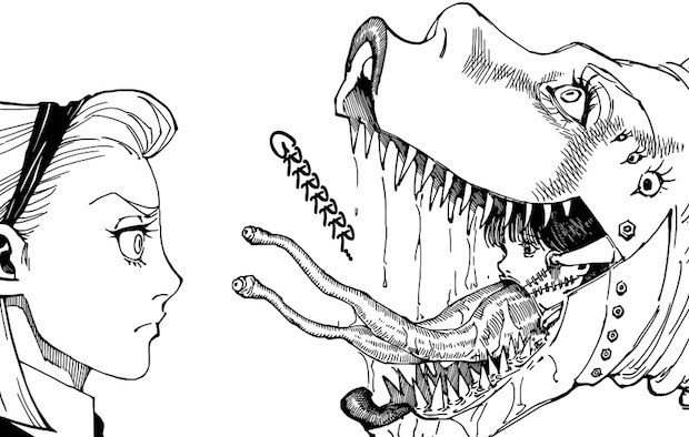 Je crois qu’on peut dire que l’arc du Dark Continent vient de mettre la seconde ! Et ça va faire mal *_* Hâte de voir quelle sera la réaction de Kurapika lorsqu’il aura la possibilité d’en finir avec Tserriednich et sa Bête Gardienne ! Quelque chose me dit que ce sinistre personnage est capable de s’ériger au même rang qu’un Hisoka ou qu’un Kuroro. Par ailleurs, je me demande d’où vient le vase ayant insufflé ce nen parasitaire… Celui-ci est tellement puissant que je ne serais pas surpris d’apprendre qu’il provient du Dark Continent ! Anyway ! Tserriednich a beau être redoutable, m’est avis qu’il ne faudrait pas pour autant sous-estimer le premier fils héritier —> Benjamin Hui Guo Rou. Je rappelle que ce type est capable de tuer un lion sans aucune connaissance du nen. Tôt ou tard, lui et son petit frère devront s’affronter ! Vivement…