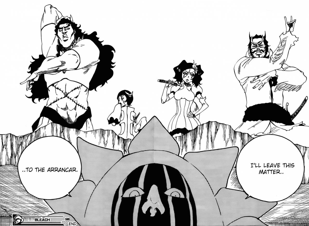 Mkay.Heureusement que Kurotsuchi est marrant et prend toujours son adversaire de haut, ça permet de rendre la lecture un tant soi peu agréable. Quant à l’entrée en scène des Arrancar random, comment dire…non. Après, ça leur permettra d’avoir un deuxième développement (ce qui n’est pas donné à tout le monde). Sur les quatre présents, je n’en reconnais que deux ahah.
