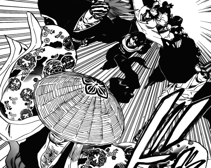Ho un bon chapitre de Bleach (╹o╹) Comme quoi, ça arrive de temps en temps ! À moins que mes attentes envers Bleach aient encore régressé sans que je ne m’en sois rendu compte ? C’est une théorie fortement envisageable. Anyway, ne boudons pas notre plaisir : nous avons de l’humour, un premier aperçu des combats finaux…et du Kenpachi (⌐■_■) C’est d’ailleurs probablement pour ça que j’ai apprécié ce chapitre. À chaque fois, il suffit que ce gros zouave se pointe pour que je sois en mode « Oh…OH OH ! ».
