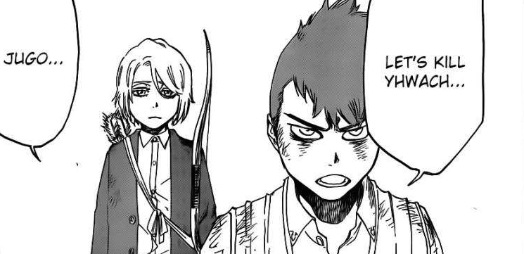Après, ça reste assez sympa de constater que Bazz et Jugo sont amis d’enfance et s’étaient fixés comme objectif de tuer Yhwach. D’ailleurs, au passage, c’est QUOI CE NOM DE M*RDE ? Chaque fois que je dois évoquer Yhwach, je suis obligé de revoir mes articles précédents tellement l’orthographe est immonde. Anyway, j’espère qu’on va rapidement faire le tour de cet énième flashback et conclure ce combat qui commence déjà à m’agacer ._.