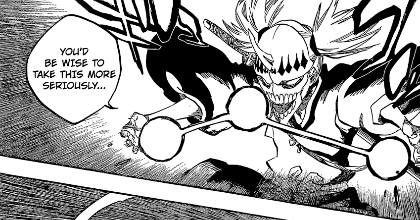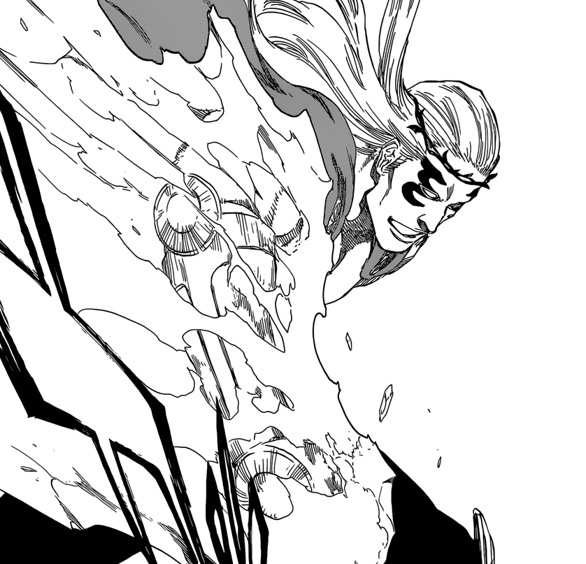 Ce qui nous permet de revoir ENFIN les transformations Vizard —> on ne les avait plus vu depuis l’ellipse (╹_╹) Anyway, venons-en désormais au binôme Sakimune VS Nakk…avec Yuushirou qui vient déjà de se faire out <_< plus qu’à Yoruichi de restaurer l’honneur de la famille (-‸ლ) Je me demande par contre comment elle va faire vu que Gerard a le pouvoir le plus cheaté de toute la planète. Une petite aide de Grimmjow maybe ? Au cas où Kubo n’aurait pas oublié son existence…