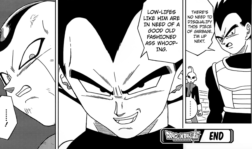 Et pour cause, ils ne respectent pas du tout le support original -_- De la même manière qu’ils n’ont jamais respecté One Piece. Ce qui explique pourquoi vous ne voyez quasiment aucune review de l’anime. Assister à un massacre affublé d’un rythme soporifique et d’une animation de stagiaire 1ere année, très peu pour moi ! Anyway, Frost s’avère être une saloperie de tricheur O_O Et j’aurais aimé que Piccolo puisse avoir une victoire à son actif mais il semblerait que cela soit trop demandé -_- Gogogo Vegeta ! Enchaine les victoires (`0´)/