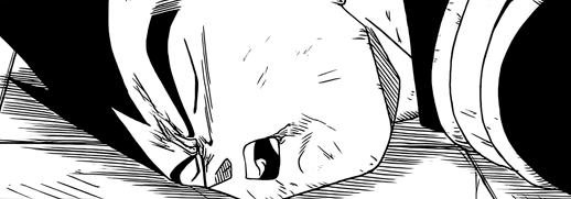 Le dessin est excellent et n’a presque rien à envier à celui du maitre (⌐■_■) Et j’ai cru comprendre que Vegeta parvenait à atteindre le SSJ3 (-‸ლ) Stade qu’il n’est toujours pas parvenu à atteindre dans DBS…et qu’il n’atteindra jamais vu que le SSB (Super Saiyan Blue) lui est supérieur sur tous les points ! D’ailleurs, ça aurait été sympa que Vegeta brille davantage face à Hit -_-‘ C’est encore pire que dans l’anime —> sa défaite est totale xD Vivement qu’il puisse se rattraper dans le prochain gros arc ! On parle du prince Saiyan, bordel !!!