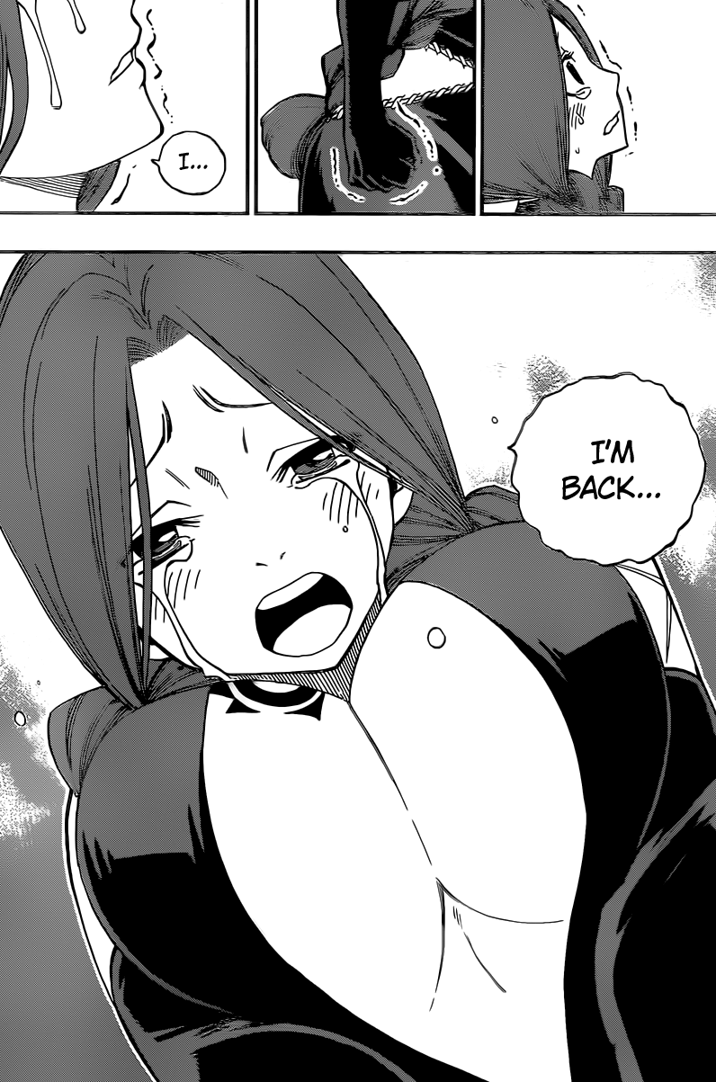 Tartaros : voilà donc le nom de la guilde ennemie ultime que devront affronter nos héros de Fairy Tail. Hm. À part ça, il fallait que Hiro nous rajoute une couche de fanservice via un ultra zoom sur la poitrine de Flare qui prend, par magie sans doute, deux bonnets supplémentaires. Y en a vraiment qui se paluchent sur ce genre de chose ? Anyway, Minerva devrait revenir plus puissante que jamais et affrontera de nouveau Erza (avant de se refaire laminer). Allez, on va essayer d’apprécier ce nouvel arc. Je dis bien « essayer ».