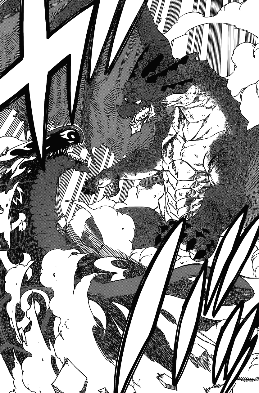 Pas grand chose ne se passe dans ce chapitre qu’on ne sache déjà. Typiquement : le fait que tous les dragons sommeillaient dans le corps des Dragon Slayers u_u On l’avait vu venir de loin depuis l’apparition d’Igneel -o- Quant à la deuxième chose que celui-ci voulait dire, à savoir que Natsu est The E.N.D., il en a COMME PAR HASARD été empêché par Acnologia <_< J’imagine que ce sera à Zeref himself de faire la « Big Revelation ». Du coup, il est fort probable qu’on ait notre Natsu VS Grey vu que celui-ci a promis à son père qu’il exterminerait The E.N.D. de la surface de la planète (╹o╹)