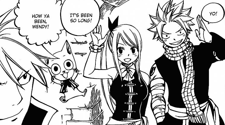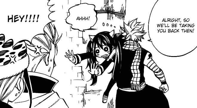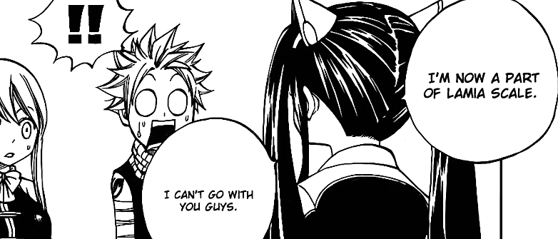 N’empêche : qui aurait cru que Wendy rejoindrait Lamia Scale…et refuserait de la quitter ? xD Même si je me doute bien qu’elle va finir par rejoindre, de nouveau, Fairy Tail. Et qu’est devenu le vieux ?! J’espère qu’il ne s’est pas fourré dans je ne sais quel traquenard. À son âge, ce n’est plus très recommandé >__< Ha si seulement Gildarts avait pris la relève… Bref, vivement que Orochimaru-bis se fasse expédier dans l’Oblivion.