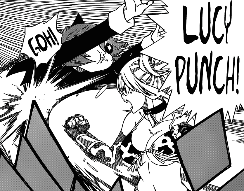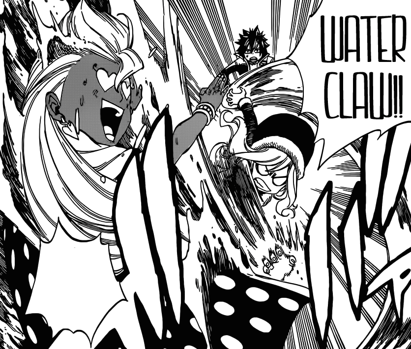 Natsu s’est déjà farci le guignol Blue Note donc chacun son tour ! Puis ça serait l’occasion de voir les progrès de Gajeel m’voyez. C’est d’ailleurs l’une des (nombreuses) tares de FT : cette obsession malfaisante à TOUJOURS vouloir mettre en avant Natsu plutôt que ses camarades. J’espère que l’ellipse me donnera tort <_< Puis Juvia a déjà pardonné à Grey ?! Sympa le monde du shonen quand même.