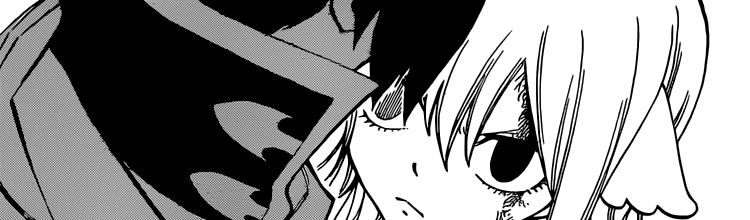 Anyway, il aura fallu même pas deux chapitres avant d’apprendre que Gajeel est toujours vivant xD Ou alors il est mort et Zeira, l’ancienne BFF de Mavis aperçue dans Fairy Tail Zero, va le ramener à la vie \o/ Vous remarquerez d’ailleurs que la petite a bien grandi ! Ce qui signifierait qu’elle n’est pas « vraiment » morte. Alors qu’on apprenait dans FT0 qu’elle n’était une illusion crée par l’esprit de Mavis ! Hm, je me demande si Hiro va pouvoir justifier correctement ce cliffhanger <_<