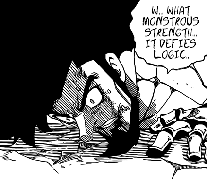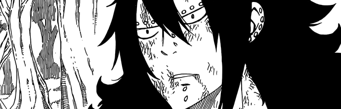 Fairy Tail recommence à me lourder -_- Tout est tellement basique… Hiro Mashima ne s’est même pas pris la peine d’imaginer une excuse un poil plus élaborée afin de justifier la survie de Gajeel. Nope ! Notre ami a simplement eu énormément de chance que Eileen applique sa magie de terraformation au même moment où il allait être aspiré par le sort de l’ennemi. Ce qui fait que Gajeel a comme par magie atterri sur la terre sacrée de Fairy Tail au lieu de clamser. Autre heureux hasard –> il rencontre Zera -_- C’est bien pratique toutes ces coïncidences !