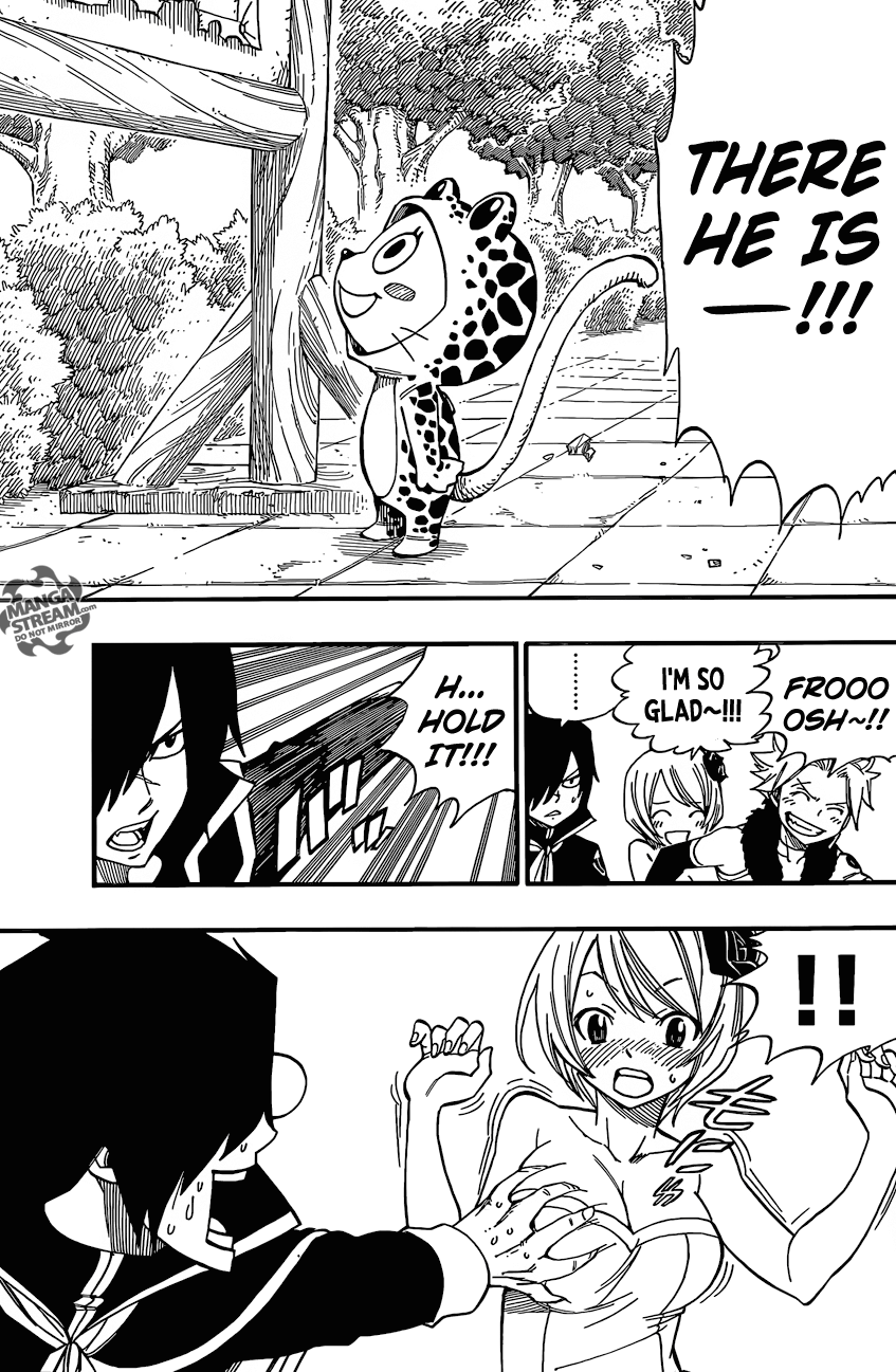 Chapitre HS plutôt sympa où on retrouve nos amis de Sabertooth à la recherche de Frosh le chat-grenouille. Et autant dire qu’il est au moins aussi performant que Zorro en matière d’orientation. Donc voilà, on se marre bien puis on reluque des boobs et des fesses vu que telle est la passion de Hiro Mashima. Sincèrement, je pense que, à un moment donné de sa carrière, il se reconvertira dans le hentai. J’en suis même certain.