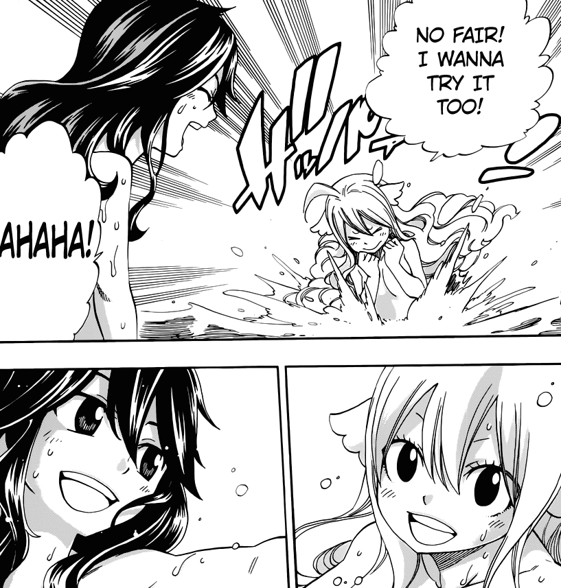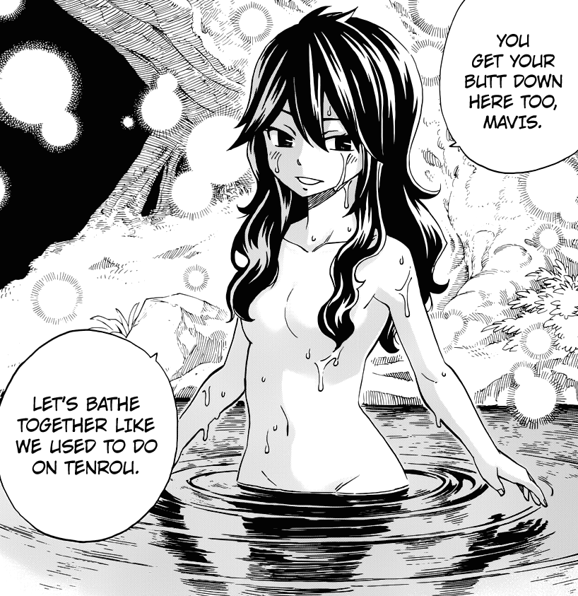 Haaa Hiro qui revient à ses amours et nous dessine une petite phase hentai out of the blue entre Mavis et Zeira :3 C’est pour ça qu’on l’aime ! Il n’empêche : plus les chapitres passent, plus la théorie « Zeira morte » prend de l’ampleur. Pourquoi ? Tout simplement parce qu’il n’y a encore eu AUCUNE interaction entre Zeira et Preicht/Warrod/Yuriy. Autrement dit, à part Mavis, PERSONNE n’a parlé directement avec Zeira.