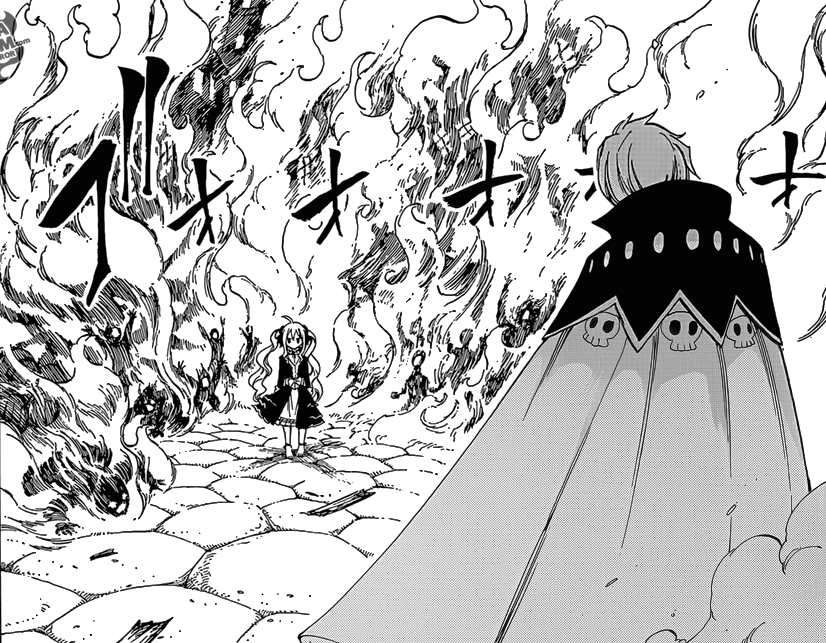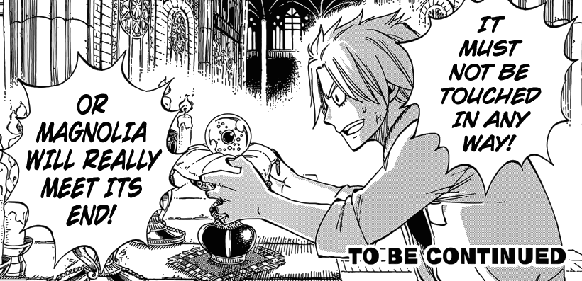 Est-ce que cela pourrait être lié au fameux Lumen History que souhaitait utiliser Makarov (le fils de Yuriy) ? Rappelons que l’actuel chef de Fairy Tail s’apprêtait à le lancer, aux cotés de Mavis, en vue de contrer les plans de Tartaros qui s’apprêtait à priver le monde de toutes formes de magie. J’imagine qu’on en saura davantage dès le prochain chapitre. Puis vivement que Geoffrey se prenne une raclée : il est tout sauf charismatique <_<