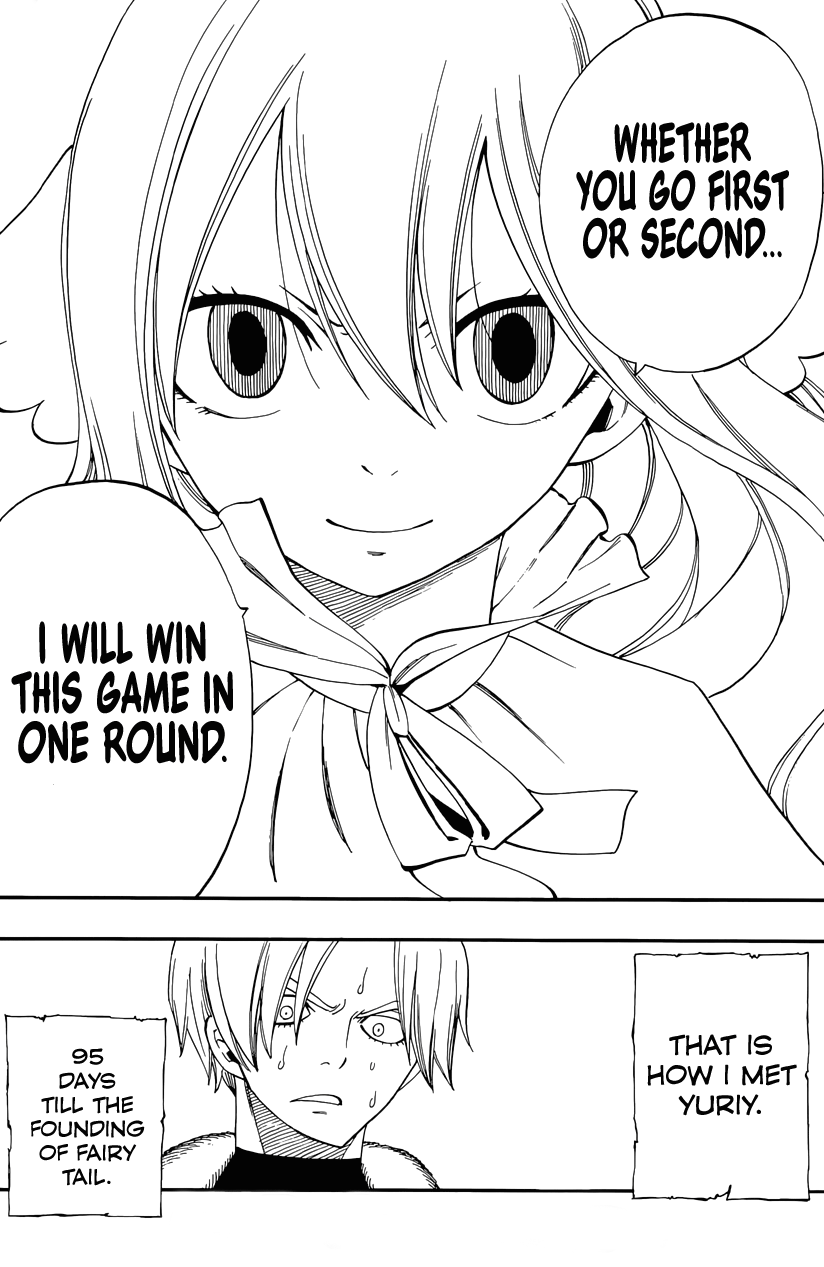 À part le faux drama avec Zeira (j’aurais dû m’en douter -_-), ce préquel continue à être une bonne surprise. On en apprend davantage sur Mavis et ses capacités de tacticiennes puis le personnage de Yuriy est intéressant. D’autant plus quand on sait qu’il s’agit du père de Makarov hehe. C’est limite devenu plus intéressant que le manga actuel ! Preuve que l’univers de Fairy Tail, malgré son absence totale de prise de risque, reste attachant.