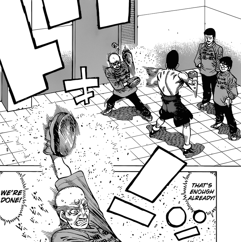 Enfin, nous arrivons au combat de Takamura (⌐■_■) En espérant ne pas avoir de nouveau à attendre 3 mois -_-‘ C’est limite si je n’ai pas envie de lire les RAW (chapitres non traduits) tellement l’attente me mine d’avance T_T Anyway, ça m’a fait marrer de voir Mashiba/Sendo se donner des conseils tout en se foutant sur la gueule quelques secondes plus tard xD Pui les voir s’arrêter, d’un coup, d’un seul, à l’écoute des coups donnés par Takamura…c’est beau !