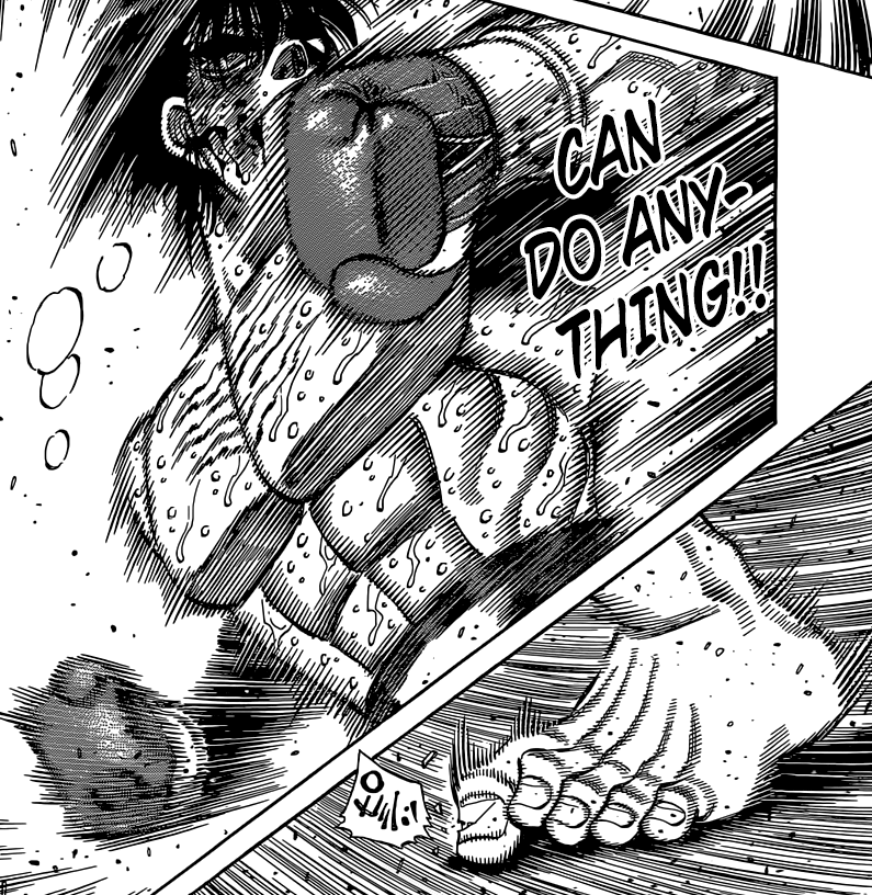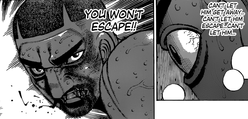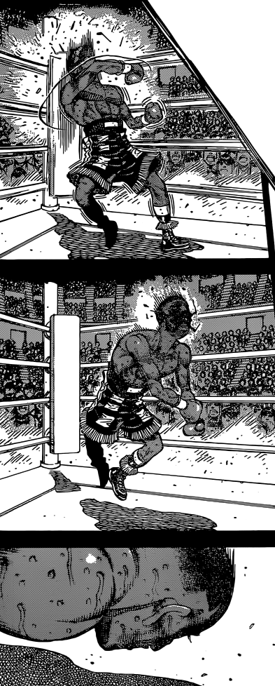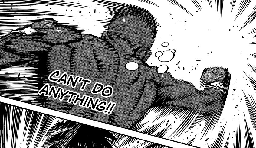Well boys, je crois bien que nous tenons ici l’un des meilleurs chapitre de Hajime no Ippo depuis sa publication il y a 26 ans de ça. J’était tellement pris dans le feu de l’action que j’arrivais à peine à respirer ._. Et autant vous dire que le nombre de manga à me procurer ce type de sensation se compte sur les doigts d’une main…amputée de quelques doigts. Anyway, et comme on pouvait s’y attendre, Takamura Sama a mis à profit l’une des leçons fondamentales qu’il avait donné à Ippo il y a de ça quelques centaines de chapitres.