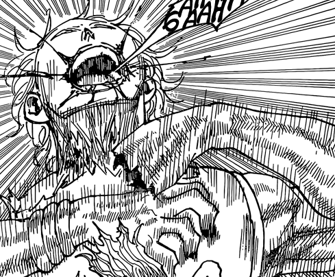 Damn…DAMNNNNNNN /OoO’/ D’un coté, je suis « déçu » que Togashi n’ait pas osé tuer pour de bon Hisoka, de l’autre, le voir tuer en un chapitre deux membres de la Brigade Fantôme est violent en soi u_u Pour autant, j’ai du mal à comprendre comment Hisoka est parvenu à faire remplir une telle condition à son nen (« Ressuscite-moi en réparant /contractant mes poumons et mon coeur si je meurs ») sans s’être pris un contre-coup ! Rappelez-vous lorsque Gon était parvenu au bout de ses capacités —> il a failli en mourir et ne peut désormais plus utiliser de nen ! Or, ici, Hisoka se remet d’aplomb en deux-deux avant de neutraliser Machi et tuer Kortopi + Shalnark…