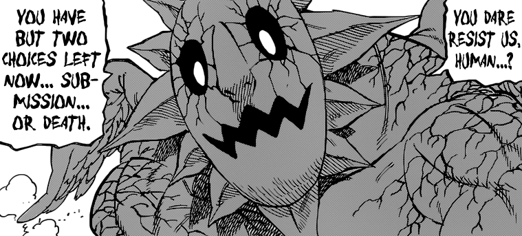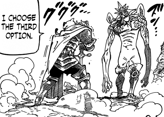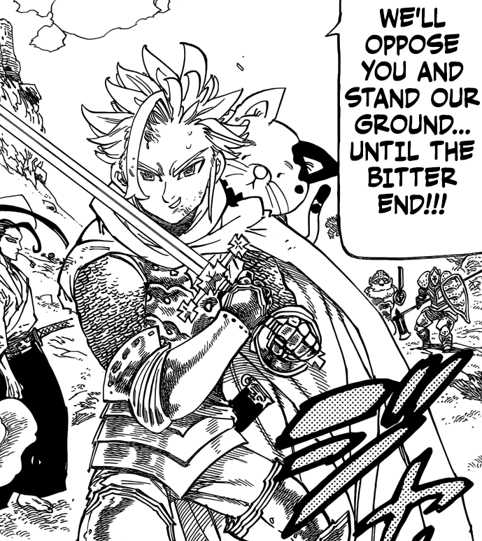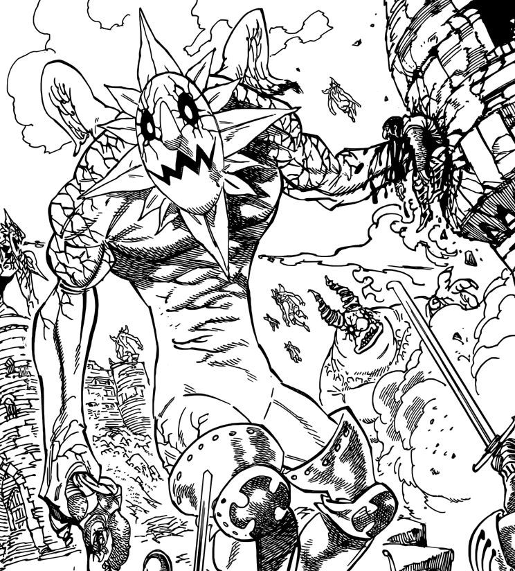 Exactement ce que j’espérais—> l’avènement d’un Dark Age avec la domination des Ten Commandements (ou plutôt Eight) sur l’ensemble du territoire de Britannia. Avec une petite ellipse de 1 mois histoire de nous faire comprendre que Meliodas a bel et bien été tué par son jeune frère Estarossa .-. Reste à savoir quand aura lieu son comeback xD D’ici quelques chapitres ? D’ici un tome entier ? Voire plusieurs ? J’aimerais bien voir ce que donne Nanatsu sans son héros principal (╹o╹)