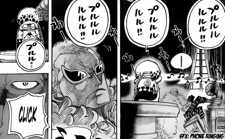 Pas grand chose d’intéressant pour ce chapitre de One Piece puisque de combat Doflamingo/Kuzan, il n’y en aura point. Le reste s’étale entre scènes humoristiques (du grand One Piece en passant) et l’intrigue n’avance pas si ce n’est confirmer la résignation de Doflamingo en tant que Roi de Dressrosa et Capitaine corsaire. L’alliance entre Kid, Apoo et Hawkins était elle aussi connue donc rien de nouveau. On appréciera néanmoins le coté politique et la « grandeur » de Dofla : plus les chapitres avancent et plus il semble avoir à cœur les intérêts de son peuple (qui le tient par ailleurs en haute estime). A suivre.