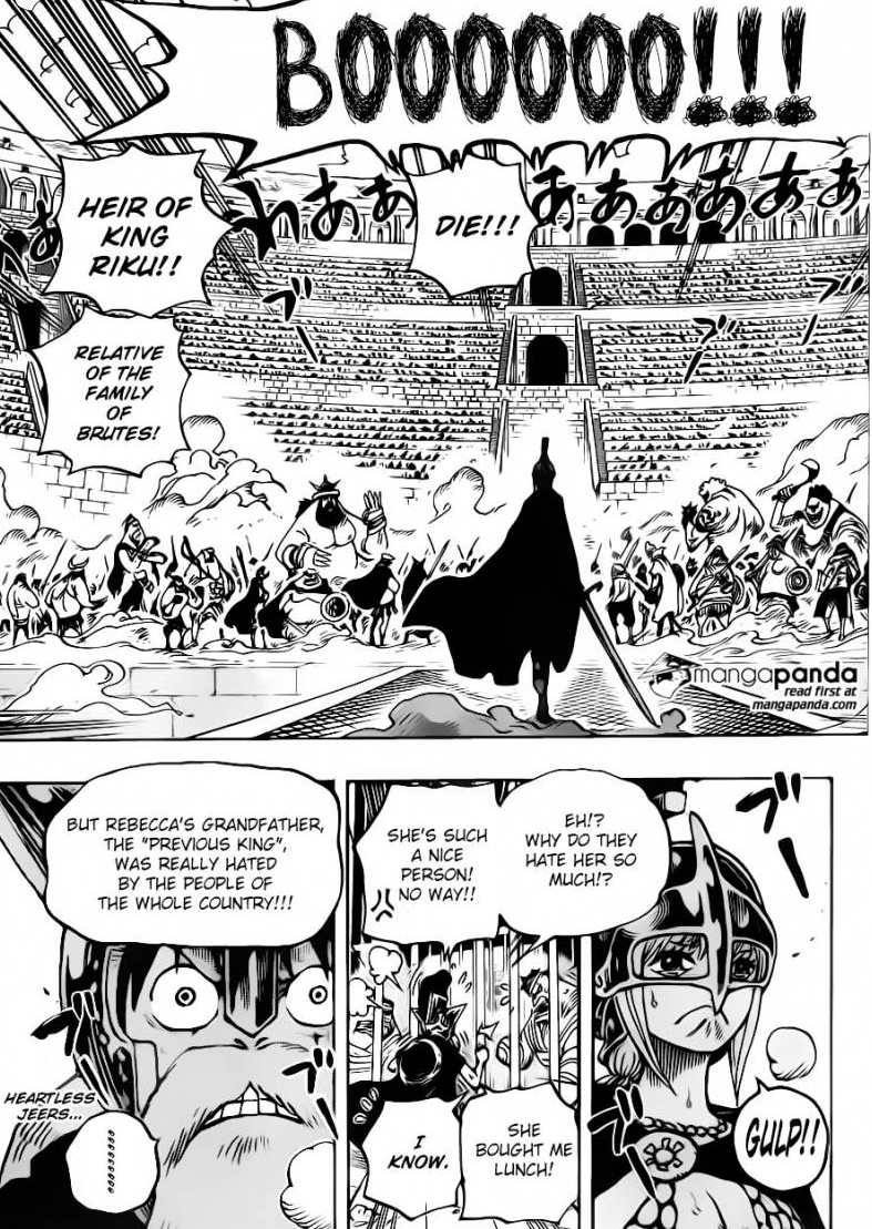 Chapitre 100% flashback et, il faut le reconnaitre, conventionnel as fuck. La petite orpheline recueillie par le héros protecteur qui lui apprend à combattre contre les méchants blablabla…tu pouvais faire mieux Oda. Reste que ce dernier a la très bonne idée de ne pas trop faire trainer les choses et reprend la trame principale dès la fin du chap. N’empêche que ce n’est pas la première fois, depuis l’arc des hommes-poisson, que la narration souffre de temps mort. Il est temps de se reprendre.